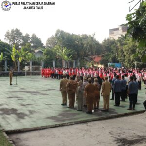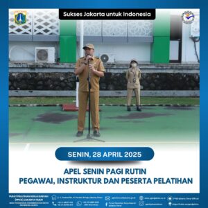 (28/04/2025) Sebanyak 320 Peserta Pelatihan angkatan II Tahun 2025 beserta Instruktur dan PJLP PPKD Jakarta Timur ikut serta dalam pelaksanaan Apel Pagi rutin Pegawai ASN PPKD Jakarta Timur setiap hari senin sesuai arahan Sekretaris Daerah Provinsi DKI Jakarta yang tertuang dalam Surat Edaran nomor 4/SE/2022 tanggal 13 Januari 2022 tentang pelaksanaan apel pagi di lingkungan Pemerintah Provinsi Daerah Khusus Ibukota Jakarta yang dipimpin oleh Kepala Pusat Pelatihan Kerja Daerah Jakarta Timur, Bapak H. Teguh Hendarwan, S.Sos., M.Si.