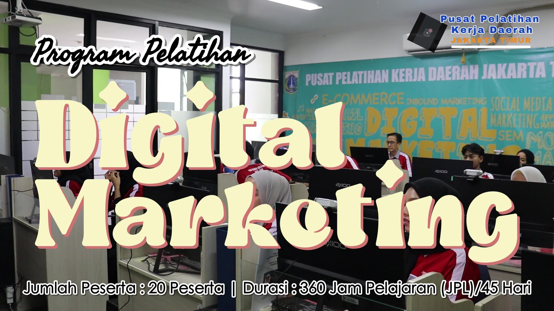 Digital Marketing Skema Pelatihan Jenis Pelatihan : RegulerNama Kejuruan : Bisnis dan ManajemenNama Program : Digital MarketingJenis Skema : (KKNI/Okupasi/Klaster)Jumlah Angkatan : 3 AngkatanDurasi : 240 JPKuota : 20 Orang/AngkatanSumber Biaya : APBD DKI JAKARTA TAHUN 2026 Skema Uji Kompetensi Jenis Pelatihan : RegulerJenis Skema : (KKNI/Okupasi/Klaster)Judul Skema : Digital MarketingLembaga Sertifikasi : LSP Teknologi DigitalJumlah Angkatan : 3 AngkatanSumber Biaya : APBD DKI JAKARTA TAHUN 2026 Jadwal Pelatihan Gelombang I Gelombang II Gelombang III Gelombang IV Gelombang V Catatan :Jadwal dapat berubah sewaktu-waktu menyesuaikan ketersediaan APBD DKI Jakarta Tahun 2026. Video