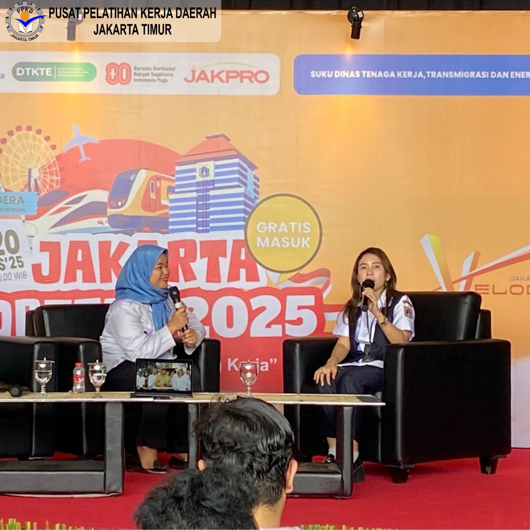 (20/08/2025) Talkshow bersama Pusat Pelatihan Kerja Daerah Jakarta Timur meriahkan Hari kedua sekaligus hari terakhir Gelaran Jakarta Jobfest 2025 yang diselenggarakan oleh Suku Dinas Tenaga Kerja, Transmigrasi dan Energi Kota Administrasi Jakarta Timur bertempat di Plaza Bendera, Jakarta International Velodrome.