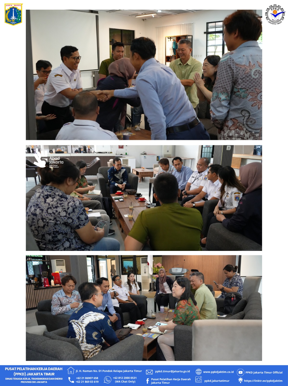 (15/04/2026) Pusat Pelatihan Kerja Daerah Jakarta Timur menerima Kunjungan dari Bidang Pelatihan dan Produktivitas DTKTE dan P3MI : PT Haena Duta Cemerlang, PT Shinsou Gakkou dan PT Citra Insan Mandiri bertempat di Gedung Barista.