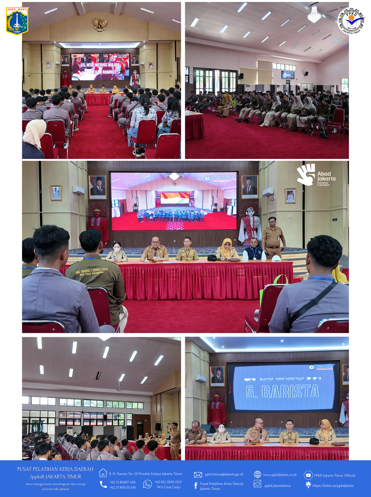 Semoga kesempatan ini menjadi gerbang karier yang gemilang bagi para siswa yang berkunjung serta memperkuat kerja sama antara PPKD Jakarta Timur dan dunia pendidikan demi mendukung pemerintah mengatasi pengangguran di DKI Jakarta. Perlu diketahui bahwa seluruh proses seleksi ini GRATIS tanpa pungutan biaya apa pun.