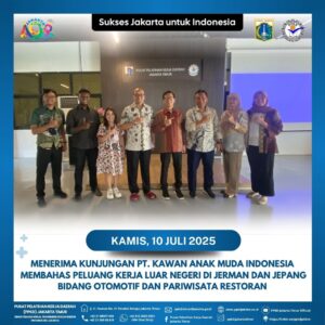 (09/07/2025) Kunjungan kerja dari PT. Kawan Anak Muda Indonesia diterima oleh Kepala Pusat Pelatihan Kerja Daerah Jakarta Timur, Bapak. H. Teguh Hendarwan, S.Sos., M.Si, Bersama Kepala Bidang Pelatihan dan Produktivitas Dinas TKTE DKI Jakarta, H. Budi Utomo, S.H., M.H., bertempat di Gedung Barista PPKD Jakarta Timur.