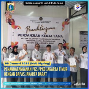 Rangkaian kegiatan berupa Penandatanganan secara kolektif Perjanjian Kerja Sama (PKS), Silaturahmi dan diskusi terkait rencana program pembimbingan Klien di Bapas Jakarta Barat, dan Evaluasi pelaksanaan perjanjian kerja sama yang telah dilaksanakan oleh PARA PIHAK.