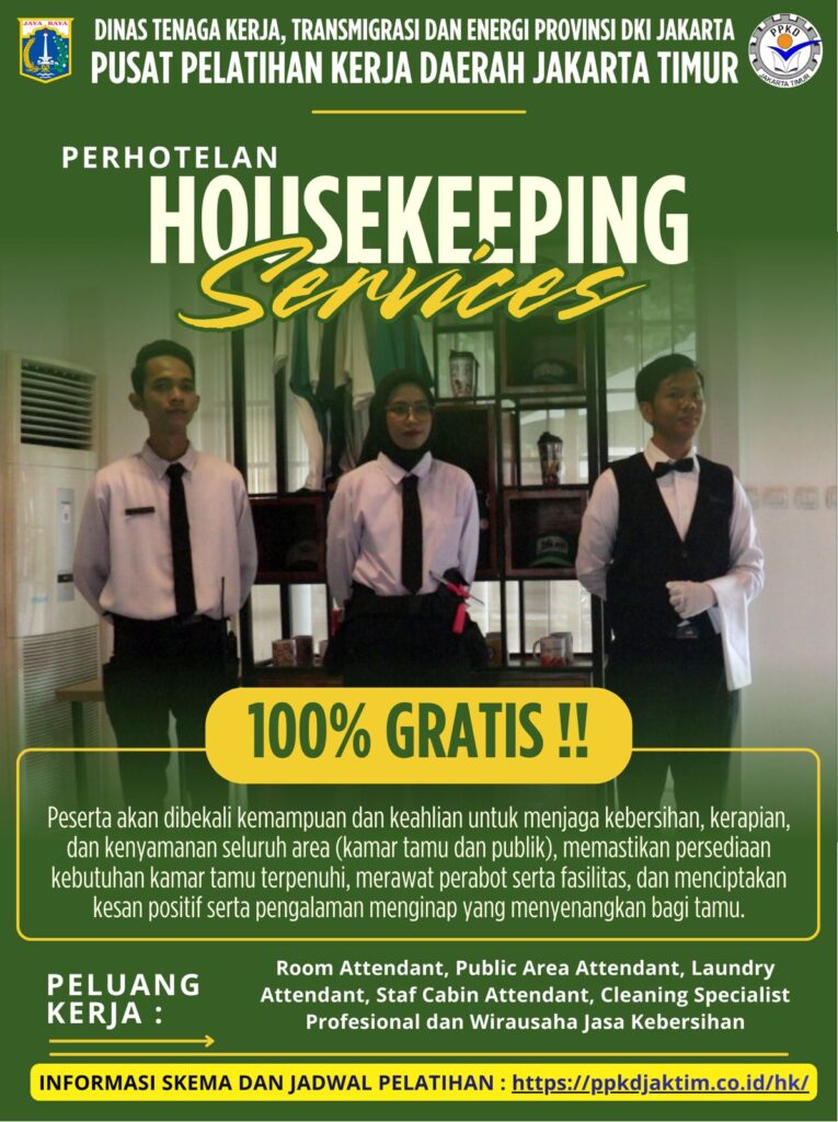 (22/01/2026) Mau Siap Kerja di Dunia Perhotelan? Ini Kesempatanmu! PPKD Jakarta Timur membuka Pelatihan Perhotelan – Housekeeping Services secara “GRATIS”!