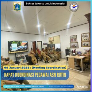 (06/01/2025) Seluruh pegawai ASN PPKD Jakarta Timur melaksanakan Rapat Koordinasi rutin pegawai dipimpin oleh Kepala Pusat Pelatihan Kerja Daerah Jakarta Timur, Bapak H. Teguh Hendarwan, S.Sos. M.Si.