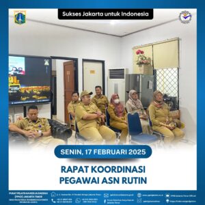 Rapat Koordinasi pegawai ASN PPKD Jakarta Timur Rutin 17-02-2025 Leave a Comment / Informasi, Kegiatan / By PPKD Jakarta Timur Hai! Sobat #PPKDJaktim,(17/02/2025) Seluruh pegawai ASN PPKD Jakarta Timur melaksanakan Rapat Koordinasi rutin pegawai dipimpin oleh Kepala Pusat Pelatihan Kerja Daerah Jakarta Timur, Bapak H. Teguh Hendarwan, S.Sos. M.Si.Link : 🔸IG : 🔸FB : 🔸X :