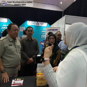 Turut hadir mewakili Kepala PPKD Jakarta Timur yakni Kepala Satuan Pelaksana Pengendalian dan Pemasaran PPKD Jakarta Timur, Linda Apriyantini, S.Sos. yang juga ikut berkunjung ke Booth Perusahaan dan UMKM Mahasiswa/i Universitas Trisakti dan Seminar Ketenagakerjaan.